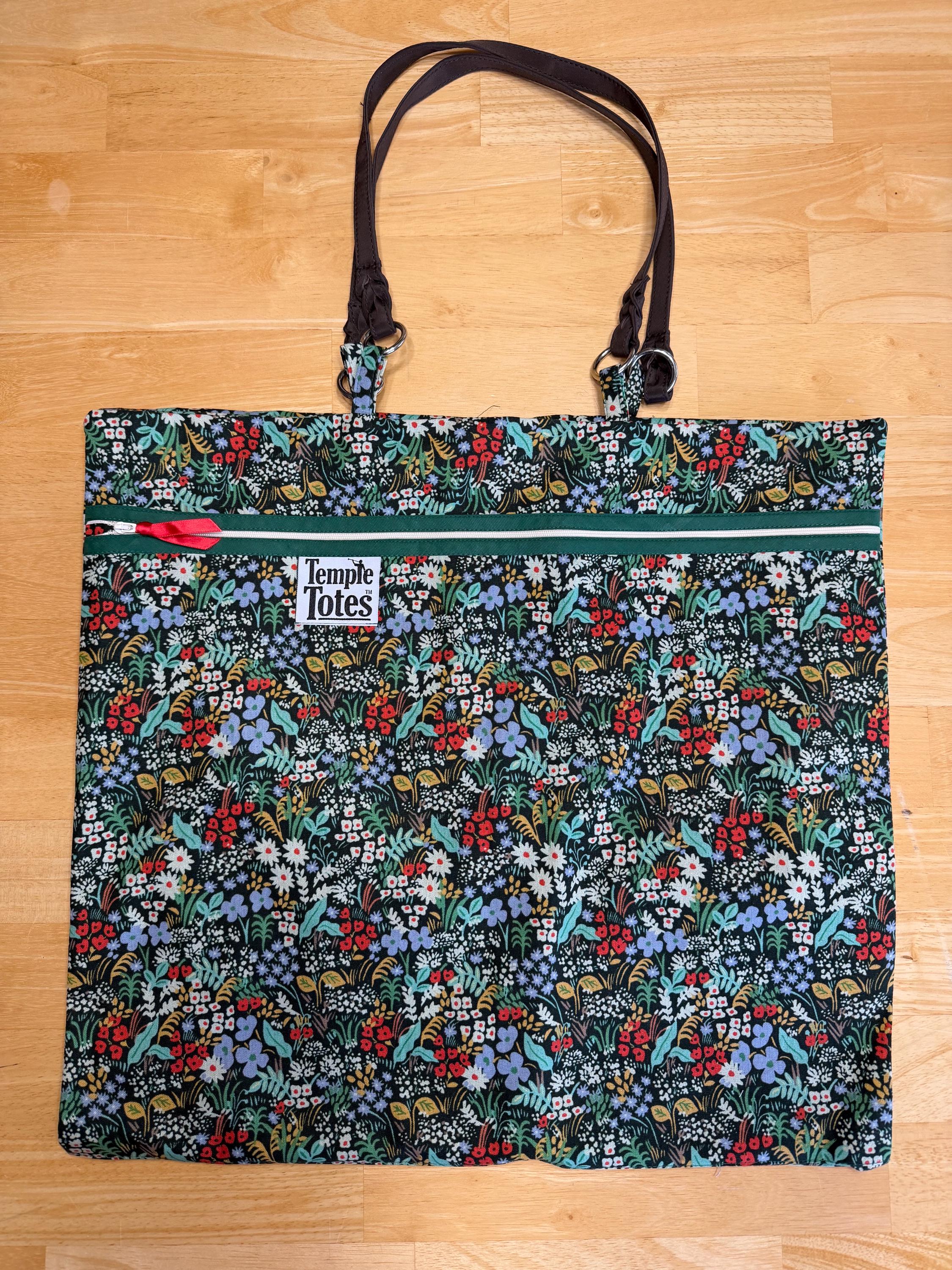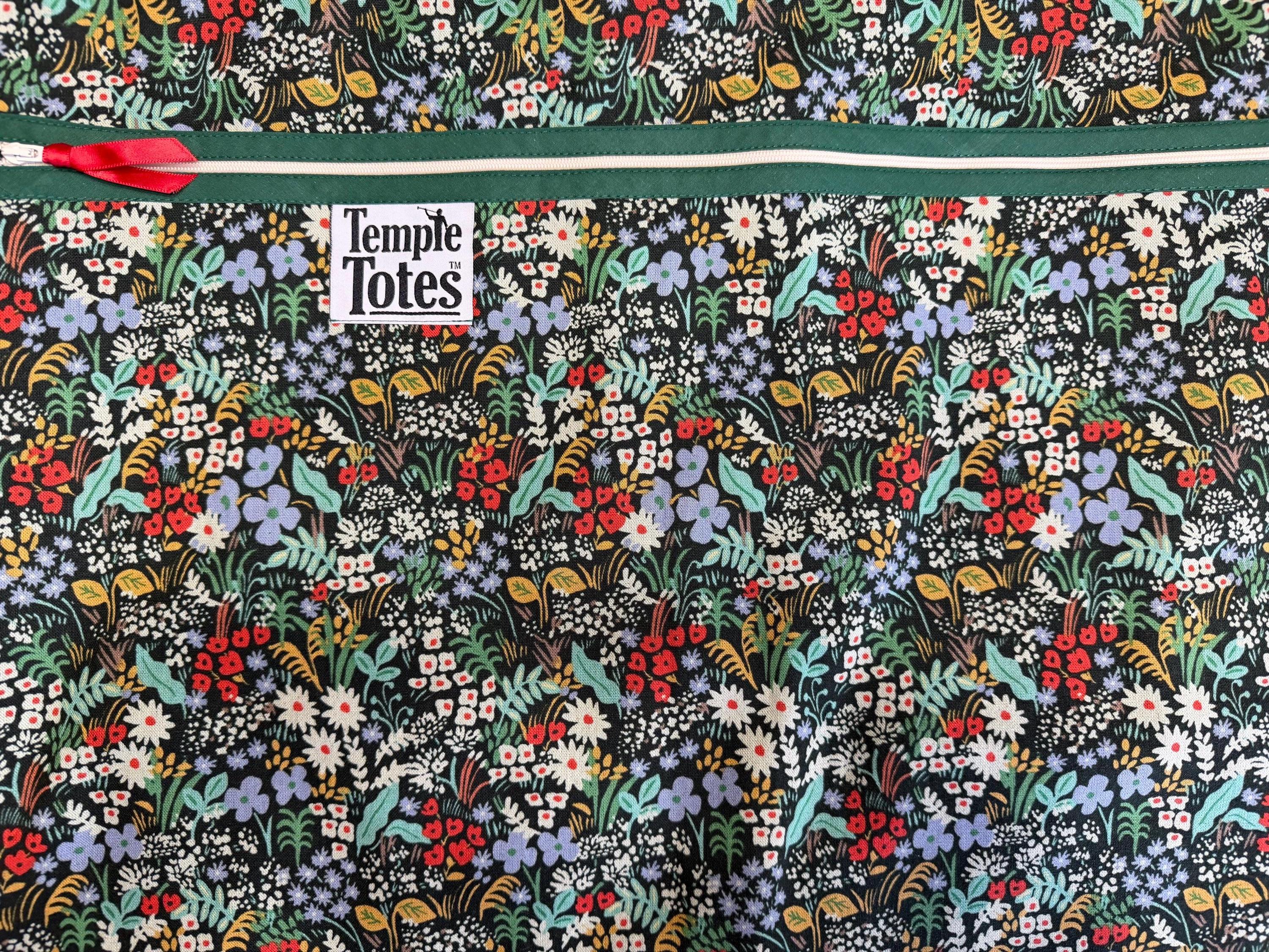 TempleTote with designer Rifle Paper Co canvas fabric and microfiber handles.